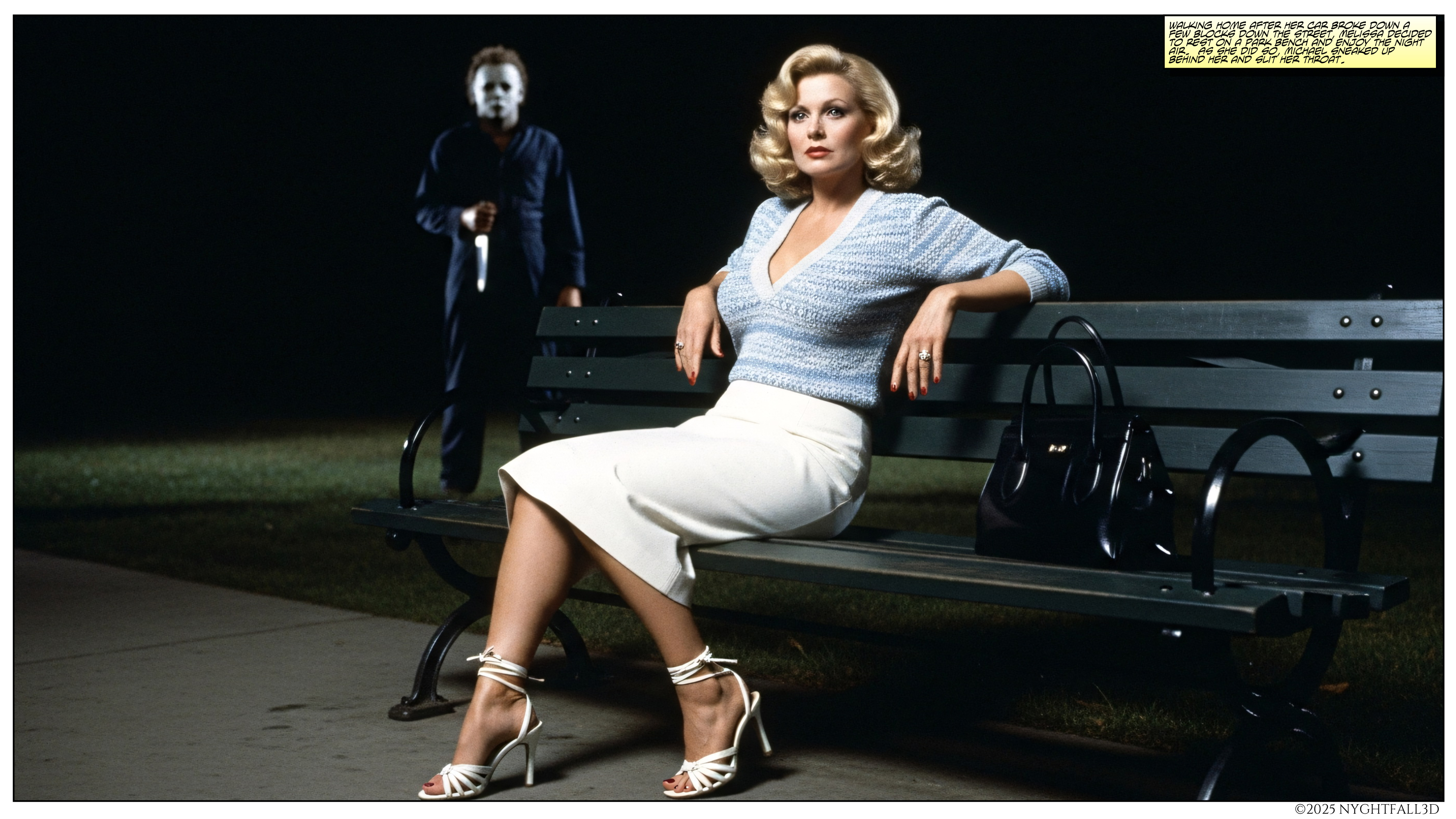 Michael first appeared in 1978. Having grown up on 80s Horror, I’m still fond of the fashion and designs of that period. Thankfully, Imagen excels at creating them. I also enjoy having him go after present-day victims. The gallery below represents both eras.