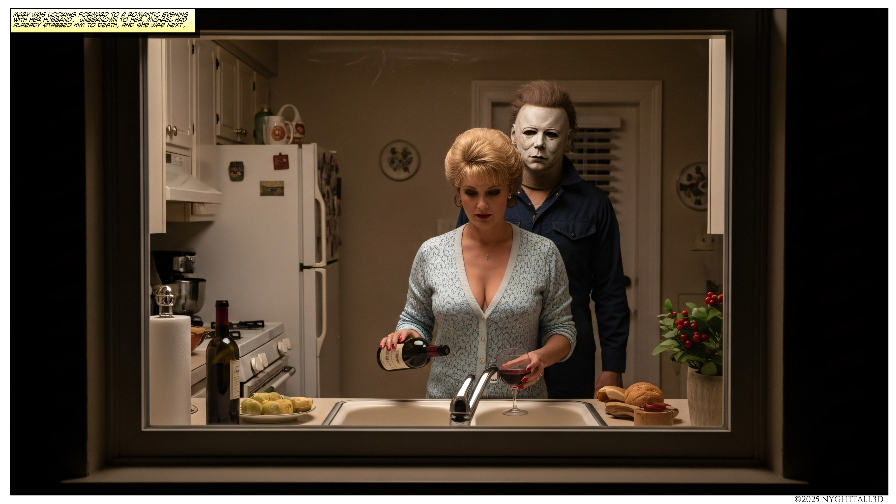 My favorite Horror movie villain is, hands down, Michael Myers, because his hunting grounds are suburban neighborhoods, and I love home invasions. I joined Krea.ai in 2024 and, after spending the majority of that time experimenting with my own serial killer archetypes and tropes, was very pleasantly surprised to discover that Google’s Imagen 4 model knows who Michael Myers is, mask and all. I simply got curious one evening in August 2025, typed Michael Myers into the prompt, and about 30 seconds later, voila. My eyes lit up and I’ve been going nuts exploring ideas ever since.